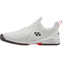 Yonex Men’s Power Cushion Sonicage 3 Tennis Shoes (White/Red) (Model #STS3WR)